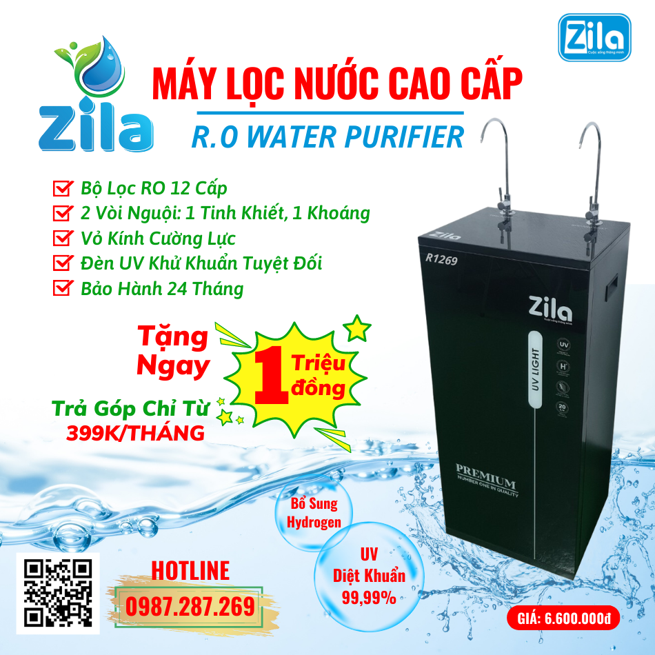MÁY LỌC NƯỚC CAO CẤP ZILA R1269UV – ĐẠT CHUẨN QUỐC GIA NƯỚC UỐNG TRỰC TIẾP CỦA BỘ Y TẾ